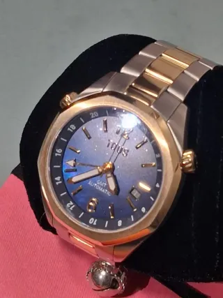 Reloj Tous - Mecanismo GMT automático. - Bisel con indicación de 24 horas. - Ventana de fecha. - Correa de eslabones en dos tonos (oro y plateado).