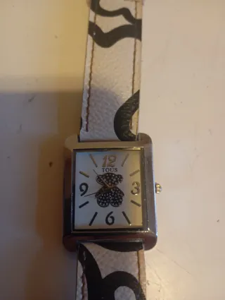 Reloj Tous con correa de caucho y esfera blanca. - Correa con estampado de ositos Tous. - Hebilla metálica. - La correa de caucho está amarillenta por el tiempo pero nunca se ha utilizado