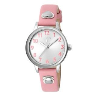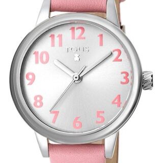 Elegante reloj de la marca Tous con detalles en dorado y correa rosa de caucho. - Esfera con números y figuras. - Hebilla dorada con el logo de la marca.