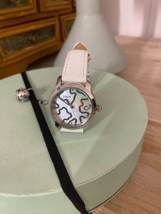 Reloj Tous analógico, forma circular con minutero de oso de la marca en rosa claro. Funciona perfectsmente, La correa es en donde se le ve uso. Está tal cual laa fotigrafia. Se envia en csja dura de la marca con garsntia y ticket de garantia comprafo en El Corte Inglés.