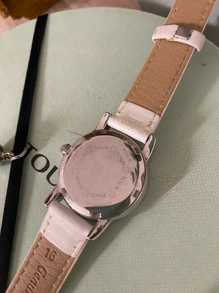 Reloj Tous Kaos . Movimiento de cuarzo. Caja de acero y correa blanca recién cambiada en joyería . Esfera nacarada con osos y calendario. Resistente al agua. Cristal mineral. sin pila .