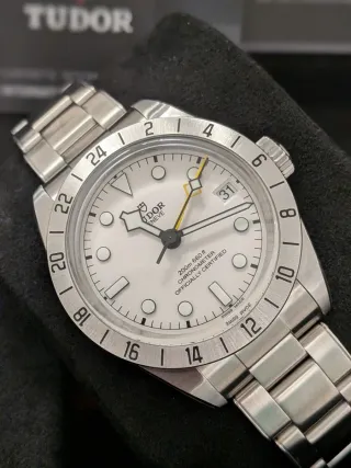 Vendo reloj original Tudor Black Bay GMT con esfera blanca, un modelo icónico de la marca que combina diseño deportivo y elegancia suiza con función GMT para doble huso horario. 🔹 Marca: Tudor 🔹 Modelo: Black Bay GMT 🔹 Esfera: Blanca 🔹 Bisel: GMT bicolor 🔹 Movimiento: Automático manufactura Tudor 🔹 Función: GMT (segundo huso horario) + fecha 🔹 Caja: Acero inoxidable 🔹 Cristal: Zafiro 🔹 Hermeticidad: 200 m 🔹 Diámetro: 41 mm 🔹 Estado: Muy buen estado (ver fotos reales) 🔹 Incluye: (caja y papeles)