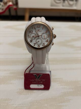 Elegante reloj Viceroy con un diseño moderno y llamativo. - Correa de color blanco. - Esfera con números y marcadores. Le falta la pila.