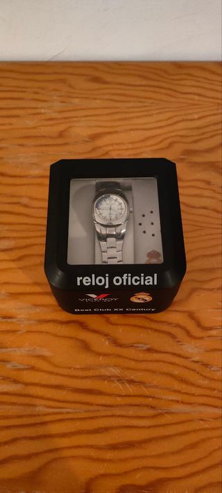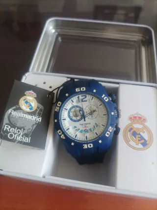 Vendo reloj oficial del Real Madrid marca Viceroy. Edición especial cronógrafo, con diseño deportivo y elegante, ideal tanto para coleccionistas como para uso diario de cualquier madridista. Características principales: • Modelo: Cronógrafo oficial Real Madrid C.F. by Viceroy. • Material: Caja y brazalete de acero inoxidable de alta calidad. • Esfera: Fondo blanco con el escudo del equipo, taquímetro y detalles en rojo. • Funciones: Cronómetro, fecha a las 4, hora militar (24h) y agujas luminiscentes. • Cierre: De seguridad en acero.