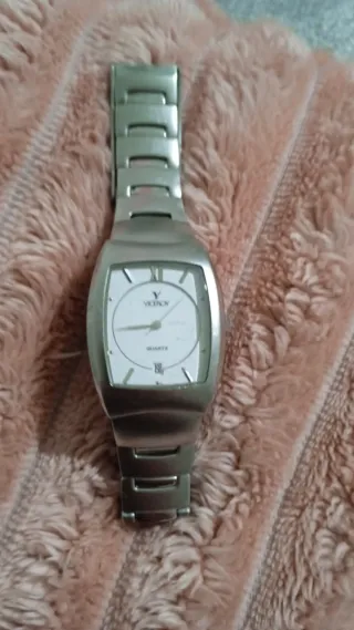 Elegante reloj Viceroy con un diseño clásico y sofisticado. - Esfera blanca con detalles en números romanos. - Correa de metal plateado. - Ventana de fecha. - Mecanismo de cuarzo nuevo con pila nueva. -Tiene un rayazo en el cristal que no se aprecia en la foto, solo se ve de lado con el contraste de ahí su precio. Se ve en la última foto
