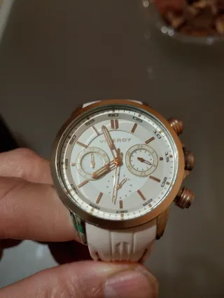 Elegante reloj de pulsera Viceroy con una esfera blanca y detalles plateados. - Diseño moderno y sofisticado. - Correa de eslabones metálicos. - Esfera con múltiples indicadores. Reloj de pulsera de la marca Viceroy edición de Fernando Alonso. Tiene una esfera blanca y agujas de color cobre. - Esfera blanca. - Correa de acero inoxidable. - Cronógrafo. - Diseño elegante y deportivo. Funciona perfectamente, 100 metros sumergible, le cambié la correa porque la original era blanca de piel y se estropeó. Más cosas en mi perfil.