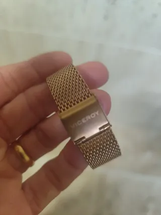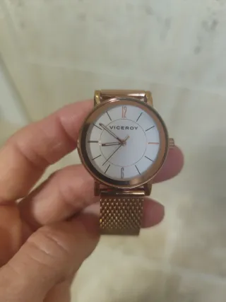 Reloj de pulsera Viceroy con un diseño elegante y moderno. - Combinación de colores dorado y plateado. - Correa de metal. - Esfera blanca con detalles. Desconozco si funciona