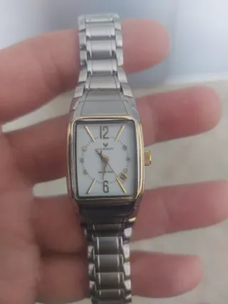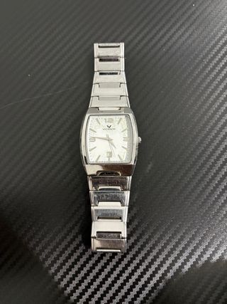 ESCUCHO OFERTAS RAZONABLES Reloj Viceroy de mujer con caja rectangular de acero y elegante esfera blanca con números romanos. Diseño clásico y atemporal, perfecto para uso diario o para ocasiones más formales. Brazalete original de acero con cierre desplegable. Funciona correctamente y mantiene buena presencia en muñeca. Presenta algunas marcas de uso y arañazos en el cristal propios del paso del tiempo, visibles en las fotos. Palabras clave: reloj Viceroy mujer, reloj clásico, reloj acero, reloj elegante. Si te gusta este artículo, tengo más relojes, Playmobil, zapatillas y material táctico en mi perfil.