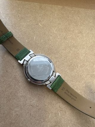 Elegante reloj Viceroy con correa de piel. - Esfera blanca con números romanos y detalles plateados. - Correa de piel texturizada en color verde. - Cierre de hebilla plateado.