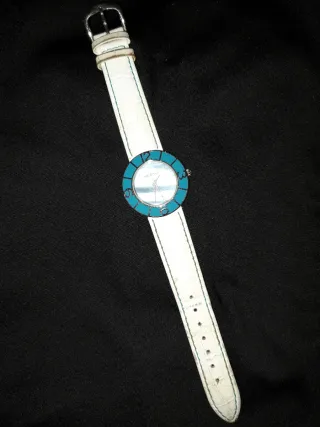 Elegante reloj Viceroy con un diseño moderno y llamativo. Esfera en Nacar miren fotos son parte de la descripción AY QUE PONERLE PILA. No hago envios retirar en Marbella centro sólo envio con correo privado Tipsa y Envialia previo pago a ellos - Correa de piel blanca con textura. - Esfera con detalles en color turquesa. - Bisel exterior en color turquesa.