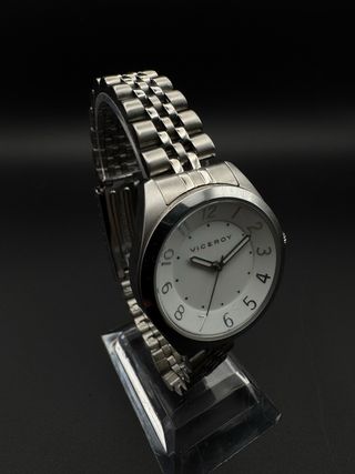 Elegante reloj Viceroy con una esfera blanca y detalles plateados. Funciona. El cristal esta rallado. - Diseño moderno y versátil. - Correa metálica ajustable.