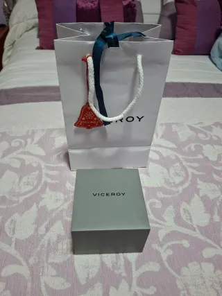 SET bolsa y caja Viceroy. Elegante bolsa de regalo de la marca Viceroy. - Color blanco. - Asa de cuerda. - Adorno Medidas 28 de largo y 18 ancho Caja de la marca Viceroy Color gris. Perfectas para guardar reloj Medidas 12x12 cm y 8 cm de alto