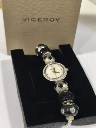 Elegante reloj Viceroy para mujer, con un diseño sofisticado. - Esfera con detalles brillantes. - Caja redonda. La correa original era blanca y de piel, sin estrenar lo guardé y ahira he tenido que tirar la correa porque se ha estropeado. Falta pila