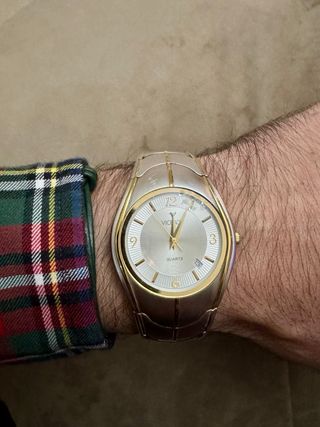 Elegante reloj Viceroy para caballero, completamente nuevo y sin usar. Conserva su pila original. - Diseño clásico con detalles dorados y plateados. - Esfera con números romanos.