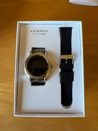 Reloj Viceroy Smart Pro con acabado plateado. Incluye correa de repuesto negra Con aviso de llamada, notificaciones, cámara remota, gestión del sueño y registro de actividad deportiva. Muchas opciones de diseño de esfera
