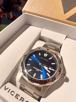 Elegante reloj Viceroy con un diseño moderno y atractivo. Ideal para complementar cualquier atuendo. - Esfera azul con detalles plateados. - Correa de acero inoxidable. - Resistente al agua 100 metros.
