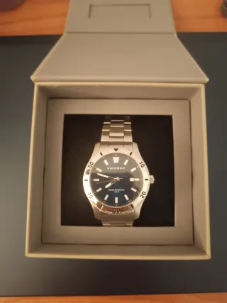Reloj Viceroy con diseño deportivo y elegante. - Esfera azul con detalles plateados. - Resistente al agua hasta 100 metros (WR 100M). - Correa de acero inoxidable.