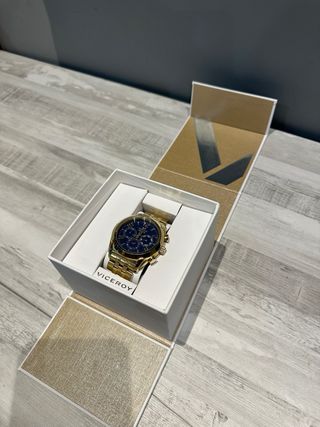 Vendo espectacular reloj Viceroy para hombre en acabado dorado (gold) con esfera azul marino. Un diseño elegante, ideal tanto para uso diario como para ocasiones especiales. Detalles del producto: • Estado: Impecable, muy poco uso. El cristal y el brazalete están en excelentes condiciones. • Funciones: Cronógrafo totalmente funcional y ventana de fecha. • Ajuste: Brazalete de eslabones con cierre de seguridad. Lo vendo por falta de uso. Precio: 75 € (negociables)