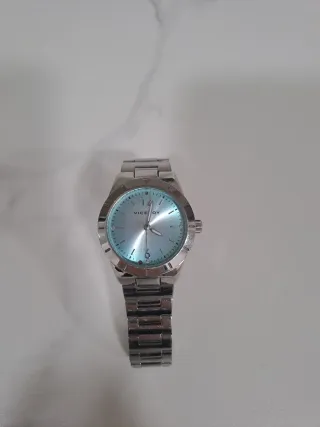 Elegante reloj de pulsera Viceroy para mujer con una esfera de color azul y detalles plateados. - Diseño moderno y sofisticado. - Correa de eslabones metálicos. - El pequeño brillante que está sobre el 12 está despegado, pero está dentro de la esfera, se puede pegar. -Sin pila.