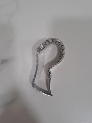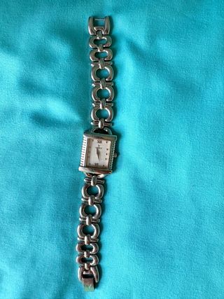 Elegante reloj de pulsera con una esfera blanca y detalles plateados. - Diseño clásico y atemporal. - Correa de eslabones metálicos. -Tamaño 45093, Para Mujer ORIGINAL -NO TIENE PILAS -Precio es negociable