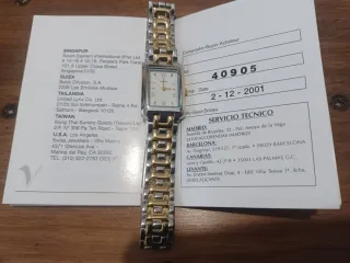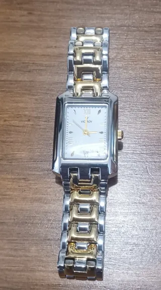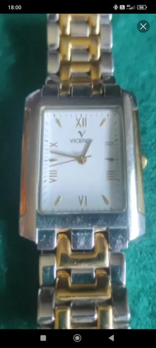 Elegante reloj Viceroy con un diseño bicolor que combina tonos dorados y plateados. Su caja rectangular y la pulsera de eslabones le dan un toque sofisticado. - Diseño rectangular. - Pulsera de eslabones. - Combinación de colores dorado y plateado. modelo 40906 a estrenar, con los plásticos todavía
