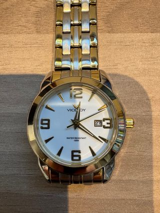 Elegante reloj Viceroy con un diseño bicolor que combina oro y plata. Perfecto para añadir un toque de distinción a tu muñeca. - Esfera blanca con detalles dorados. - Indicador de fecha. - Resistente al agua hasta 100 metros. - Sin pila