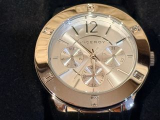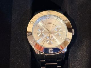 Elegante reloj Viceroy para mujer, con detalles de pedrería y una combinación de colores plateado Usado pocas veces. No tiene pila - Diseño con esfera multifunción. - Pulsera de acero. - Bisel adornado con cristales.