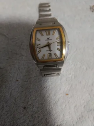 Reloj Viceroy original, diseño rectangular clásico y elegante, fabricado en acero inoxidable. • Movimiento de cuarzo • Caja rectangular de acero • Esfera clara con números romanos • Brazalete de acero inoxidable • Water resistant 30 meters • Cierre desplegable Viceroy El reloj funciona correctamente. Presenta marcas visibles de uso en el brazalete y la caja (ver fotos), propias del uso normal, sin afectar al funcionamiento. Ideal como reloj de diario o para quien busque un diseño clásico Viceroy a buen precio. Pila nueva, recién puesta.
