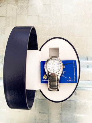 Reloj de pulsera conmemorativo del Centenario del Real Madrid. Marca Viceroy. Edición especial con número de serie, reloj oficial del centenario 1902-2002 del Real Madrid, de acero inoxidable, con caja y papeles originales, perfecto para coleccionistas o amantes del fútbol. Actualmente no funciona porque necesita cambio de pila, pero por lo demás está en buen estado general solo con algún arañazo superficial.