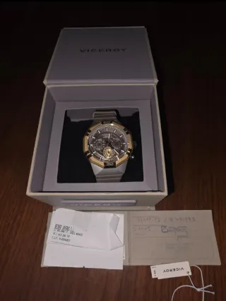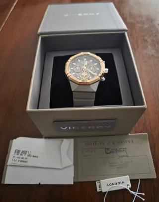 Elegante reloj Viceroy, a estrenar y en perfecto estado. - Diseño moderno con detalles dorados y grises. - Incluye caja original y documentación.