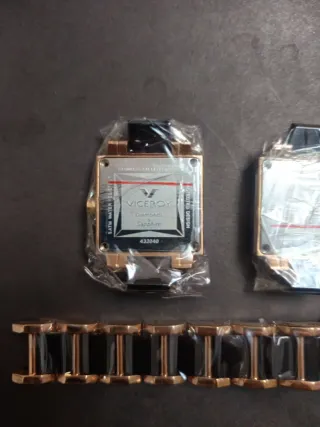 Se venden cajas y brazalete de la marca Viceroy, modelo 432040. - Brazalete con eslabones en dorado y negro. - Dos cajas de reloj con detalles dorados.