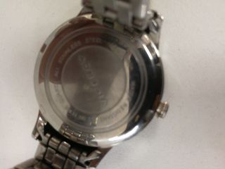 Elegante reloj Viceroy con diseño cronógrafo. Se vende junto a la tarjeta de garantía y eslabones extra. Ligeros rasguños en el bisel y en la parte posterior de la caja. Material de Caja: Acero Forma de la caja: Circular Material de Bisel: Acero Material de la Corona: Acero Color principal Esfera: Blanco Diámetro: 40 mm Cristal: Mineral Acabado: Acero Tipo de Pulsera: Brazalete Material de la Pulsera: Acero Color de la Pulsera: Acero Tipo de Cierre: Desplegable con pulsadores Dimensión de Correa: 20 - 18 MM Impermeable / Sumergible: Sumergible Profundidad / Protección: 100 metros Tipo de Movimiento: Cuarzo Analógico