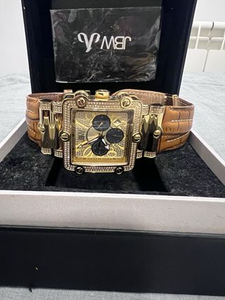 reloj nuevo.Nunca se ha usado fabricado por viceroy.Fué una colaboración que hice con la marca y me lo regalaron.Solo me lo puse para unas fotos.La aguja de la semana se ha caido.Tiene poca importancia ya que se puede abrir y colocar cuando te pongan la pila.Reloj con pila funcionando ya que ha estado desactivado.El reloj cuesta sobre 90 euros en corte ingles.Vendo por no uso.