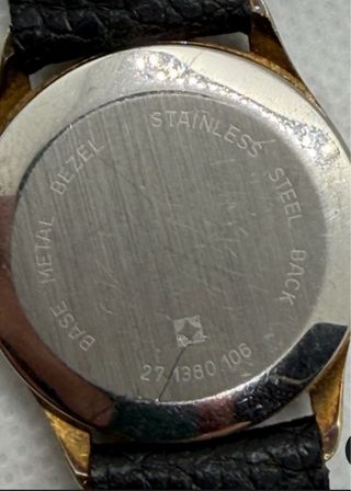 Conjunto de piezas originales del reloj Zenith clásico vintage de mujer. Incluye: – Caja rectangular original Zenith – Esfera Zenith Quartz original – Tapa trasera firmada “Zenith – Swiss Made” – Corona original incluida Material: Caja chapada en oro (PLAQUE OR G10 – 10 micras). Referencia de caja: 27.0500.106 NO incluye maquinaria ni agujas. NO es un reloj funcional. Se vende el conjunto tal como se ve en las fotos.