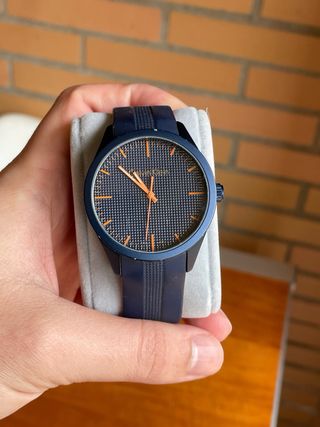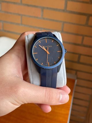Reloj Gant con correa de caucho azul y detalles plateados. - Esfera azul con diseño de líneas. - Bisel plateado. - Resistente al agua 100m.