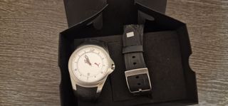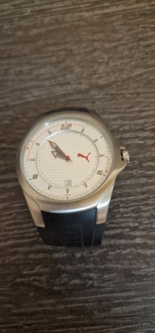 RELOJ PUMA NO TIENE PRACTICAMENTE USO SE GUARDO Y TIENE ROTA LA CORREA Y HAY QUE PONER PILA POR ESO EL PRECIO EN TIENDA SU PRECIO ES DE 80 EUROS