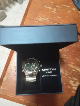 Elegante reloj de la marca Martyn Line, presentado en su caja original. - Diseño de edición limitada. - Esfera en tonos verdes y plateados. - Correa de metal plateado.