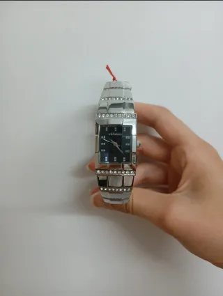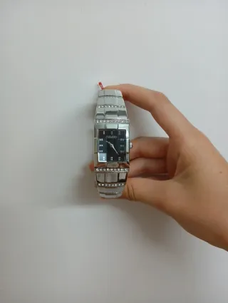 Elegante reloj Duward con un diseño moderno para mujer. - Esfera negra con marcas horarias en plateado. - Correa de acero inoxidable con circonitas. - Caja de acero inoxidable en forma rectangular. - Cristal facetado (NO es liso). - Se entrega con pila y caja original. Está nuevo, sin usar, con etiquetas. Reloj Duward Mujer Plateado Negro Regalo Navidad Circonitas Nuevo Caja Pila