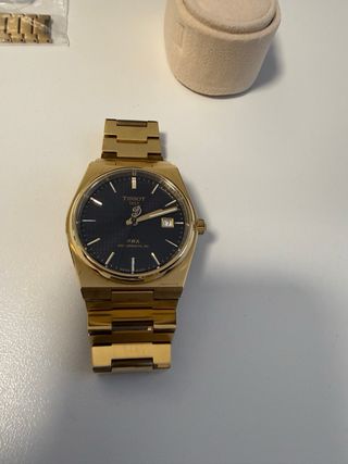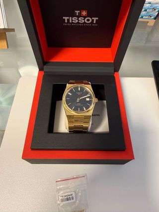 ⌚ Tissot PRX Powermatic 80 Damian Lillard – Edición Especial (Dorado) Vendo Tissot PRX Powermatic 80 Damian Lillard Special Edition, acabado dorado, en muy buen estado y con uso mínimo. 🔹 Precio: 500 € 🔹 Estado: Muy bueno, apenas usado 🔹 Movimiento: Automático Powermatic 80 (80 h de reserva de marcha) 🔹 Diámetro: 40 mm 🔹 Cristal: Zafiro 🔹 Brazalete: Acero dorado original Tissot 📦 Incluye: ✔ Caja original Tissot ✔ Papeles / documentación ✔ Todos los eslabones originales ✔ Fondo visto con grabado exclusivo Damian Lillard Reloj muy cuidado, sin golpes ni desperfectos importantes. El dorado está en perfecto estado.