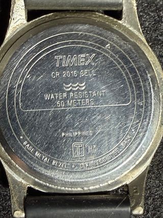 Reloj Timex con resistencia al agua. en buen estado funcionando correctamente - Modelo: CR 2016 PELL - Resistencia al agua: 50 metros - Fabricado en Filipinas - Bisel de metal base - Tapa trasera de acero inoxidable Casio gchock citizen