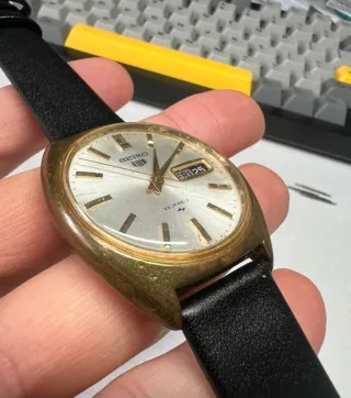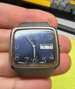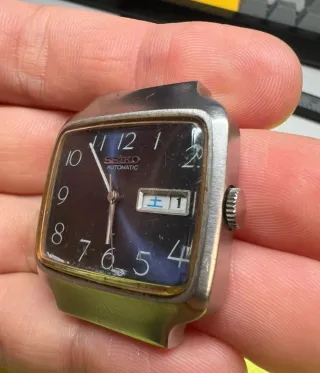Reloj de pulsera Seiko con esfera negra. Esta para reparar - Mecanismo automático. - Ventana de día y fecha.