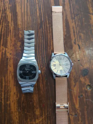 Precio por pieza pero escucho ofertas. Conjunto de dos relojes de pulsera para mujer. - Un reloj con esfera negra y detalles plateados. - Otro reloj con esfera plateada y detalles dorados.