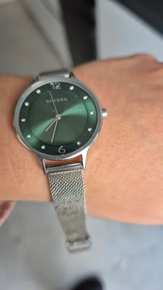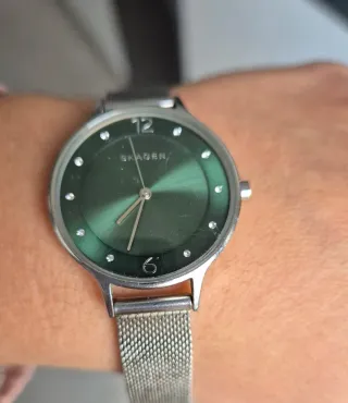 Reloj Skagen Denmark original, modelo SKW2325, acero inoxidable, esfera verde, en muy buen estado. ( algunos rasgos pequeños en el cristal, pero casi no se ve). Diseño escandinavo minimalista, elegante y ligero, ideal para uso diario o como reloj de vestir. Características: Movimiento: Quartz Pantalla: Analógica Diámetro de la esfera: 30 mm Grosor de la caja: 7 mm Color de la esfera: Verde Índices: piedras Material de la esfera y caja: acero inoxidable Color de la caja: plateado Cristal: mineral Bisel: fijo Forma: redonda