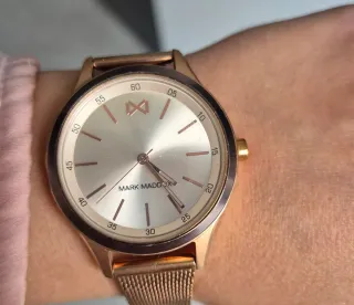 Reloj Mark Maddox original, modelo Shibuya MM7110. Color acero lp rosa, muy elegante. Funciona perfectamente. Características: – Acero inoxidable – Correa tipo malla – Resistente al agua 5 ATM – Movimiento de cuarzo