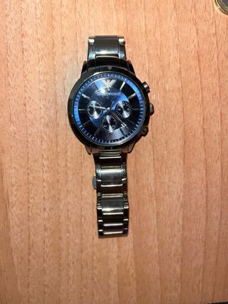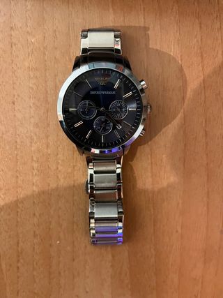 Elegante reloj Emporio Armani con detalles en negro y plateado. - Diseño moderno y sofisticado. - Correa de eslabones. - Esfera oscura con detalles luminosos.