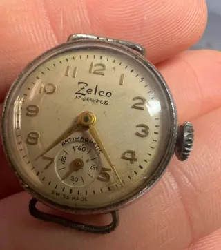 Reloj de pulsera Zelco con detalles en dorado y plateado. - Esfera con números arábigos. - Subesfera para segundos. - Indicador Antimagnetic. - Fabricado en Suiza. Modelo muy antiguo Reloj de los 40-50 Esta funcionando Ideal para coleccionistas