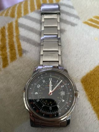 Reloj VICEROY de caballero en muy buen estado. Movimiento Quartz, esfera negra con números arábigos y ventana de fecha. Caja y correa de acero inoxidable, modelo 45008/45009, resistente al agua. Funciona perfectamente y tiene un diseño elegante, ideal para uso diario o para vestir. Se entrega tal cual aparece en las fotos. Características: - Movimiento: Quartz - Material: Acero inoxidable - Color esfera: Negro - Funciones: Hora, minutos, segundos, fecha - Estado: Muy buen estado