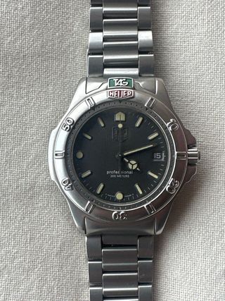 Reloj TAG Heuer Professional 200 metros. Un clásico de la relojería deportiva. - Caja y brazalete de acero inoxidable. - Bisel giratorio unidireccional. - Esfera negra con marcadores luminosos. - Ventana de fecha a las 3 en punto.