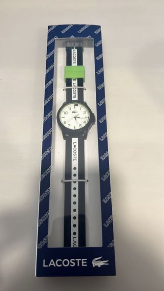 Reloj Lacoste con correa de tela y detalles en verde. - Correa con diseño de rayas. - Hebilla con el logo de Lacoste.