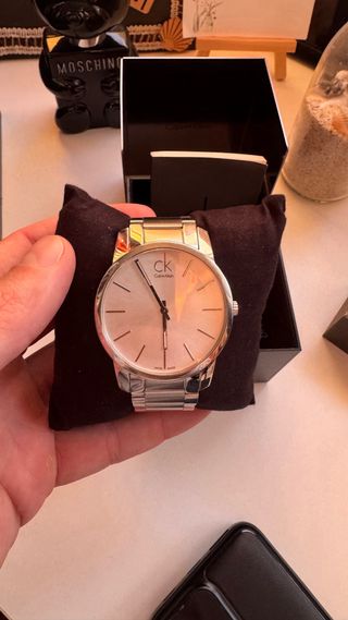 Reloj Calvin Klein plateado y blanco